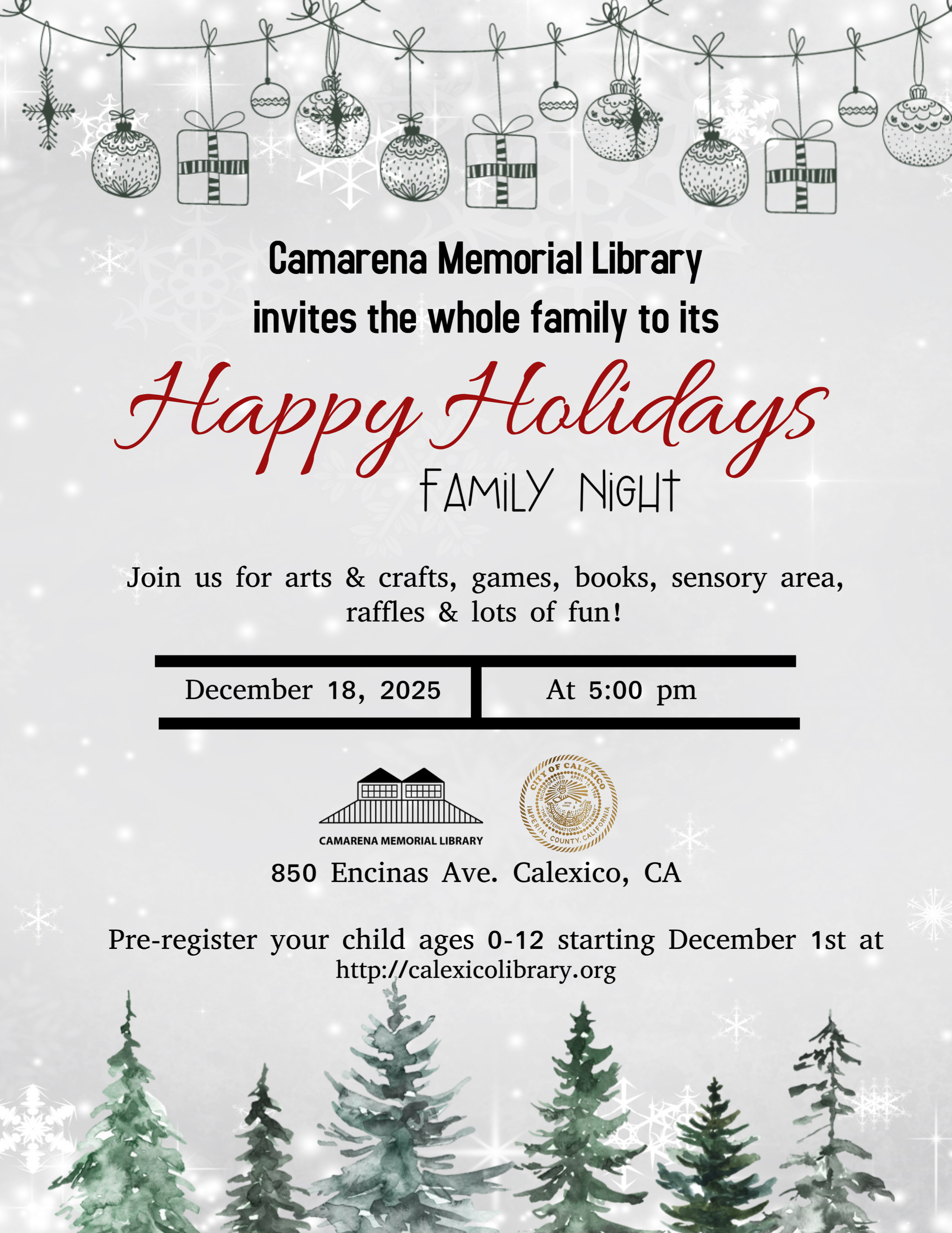 Location: Camarena Memorial Library, 850 Encinas Ave. Calexico, CA 92231