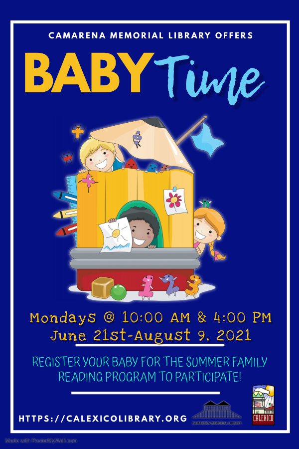 Camarena Memorial Library 850 Encinas Ave. Calexico, CA 92231 United States (760) 768-2170 Fax (760) 357-0404 Monday, August 9, 2021 10:00 am to Monday, August 9, 2021 10:20 am United States Audience Kids