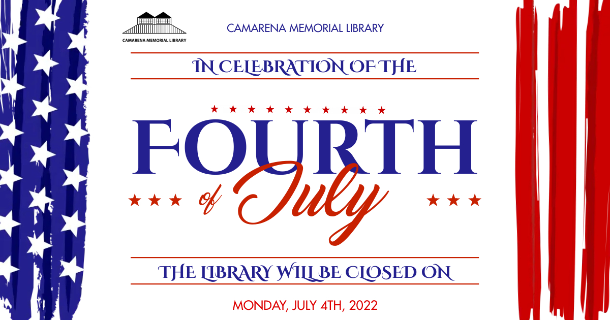Camarena Memorial Library 850 Encinas Ave. Calexico, CA 92231 United States (760) 768-2170 Fax (760) 357-0404 Monday, July 4, 2022 12:00 am to Monday, July 4, 2022 11:59 pm United States Audience Adults Kids Teens