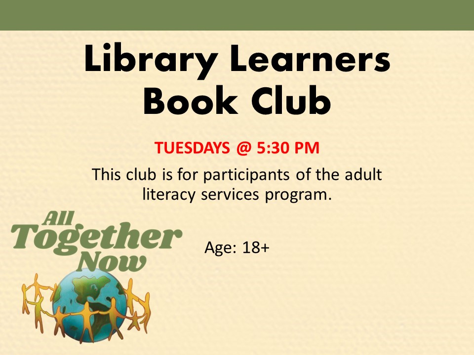 Library Learners Book Club @ 5:30 pm -- All participants must be registered for the Family Summer Reading Program
