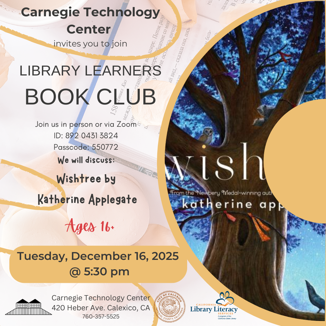 Carnegie Technology Center 420 Heber Ave. Calexico, CA 92231 United States 760-357-5525 Tuesday, December 16, 2025 5:30 pm to Tuesday, December 16, 2025 6:30 pm United States Audience Adults Teens