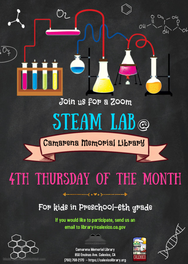 Come and enjoy doing a project that invoices science, technology, engineering, art or math. Hope you can join us at 3:00 pm
