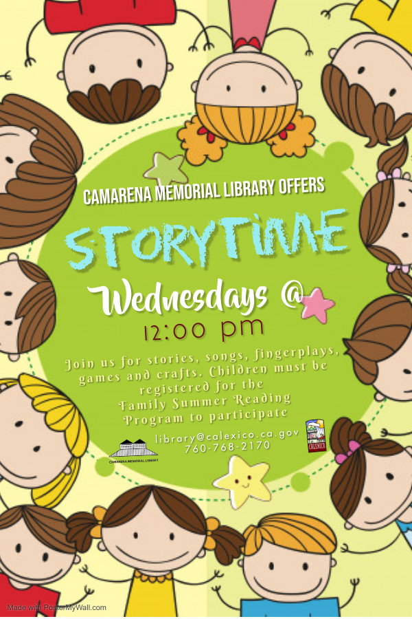 Camarena Memorial Library 850 Encinas Ave. Calexico, CA 92231 United States (760) 768-2170 Fax (760) 357-0404 Wednesday, August 11, 2021 12:00 pm to Wednesday, August 11, 2021 1:00 pm United States Audience Kids
