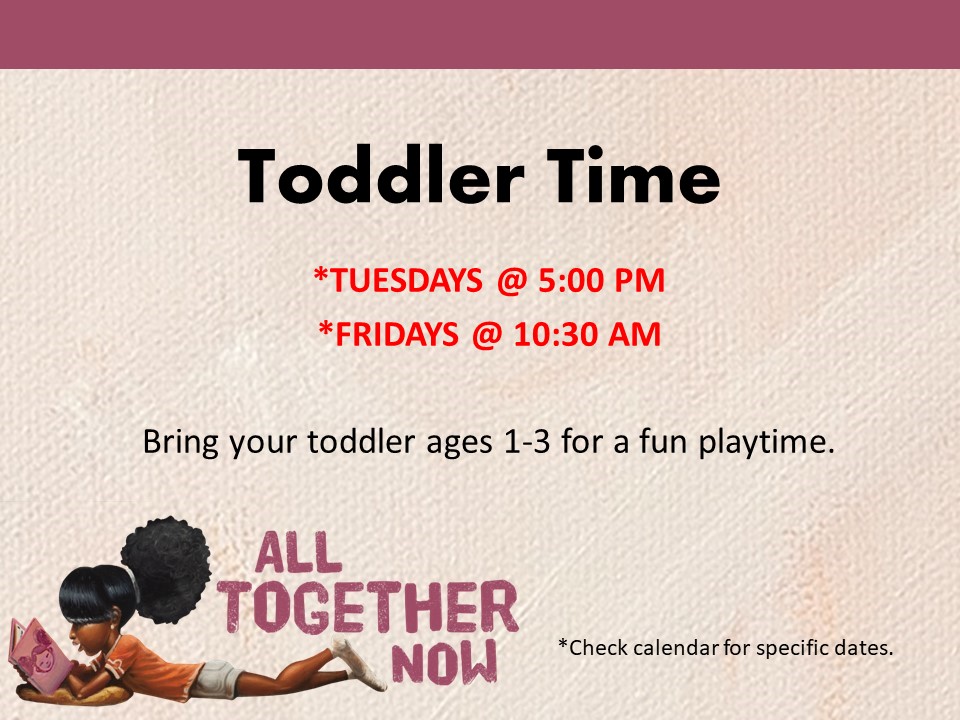 Toddler Time @ 5:00 pm - All children must be registered for the Family Summer Reading Program to participate.