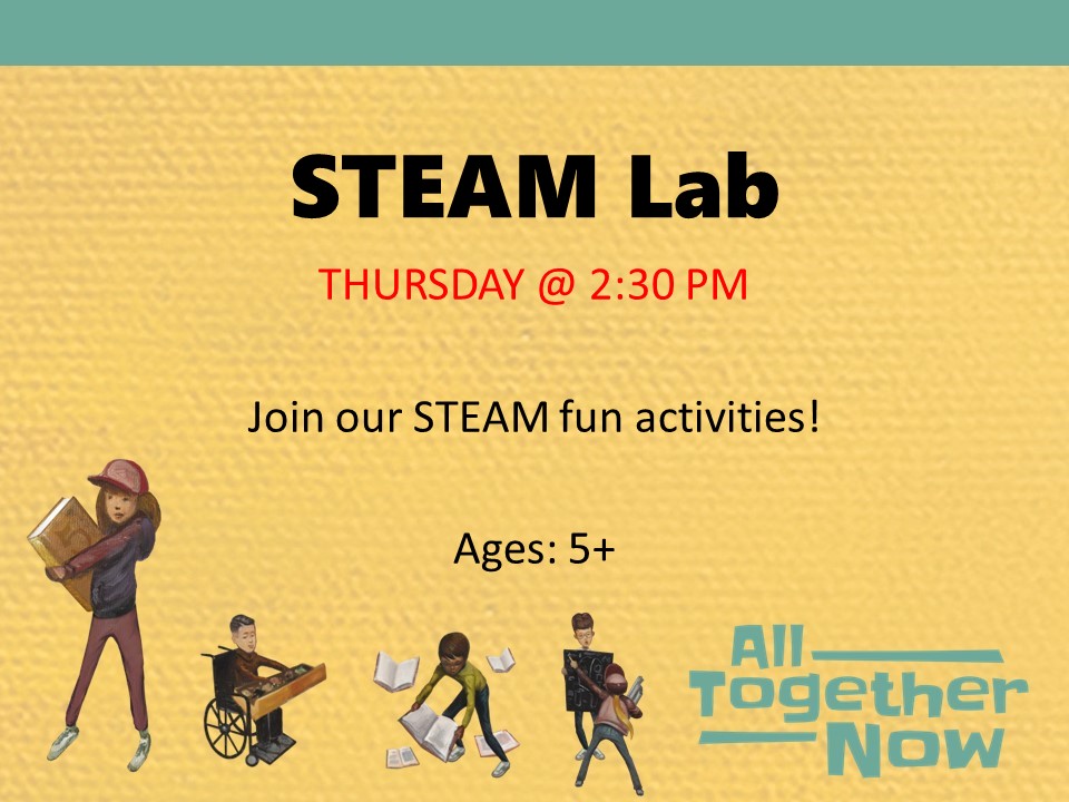 STEAM Lab @ 2:30 pm -- All children must be registered for the Family Summer Reading Program to participate.