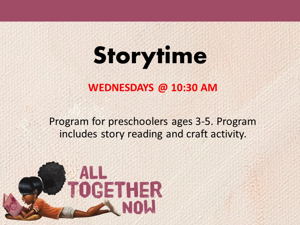 Storytime @ 10:30 am --All children must be registered for the Family Summer Reading Program to participate